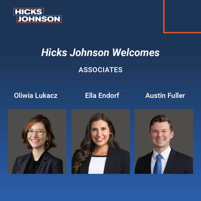 Hicks Johnson PLLC is delighted to welcome three first-year associates to the firm. Ella Endorf graduated from the University of Virginia School of…